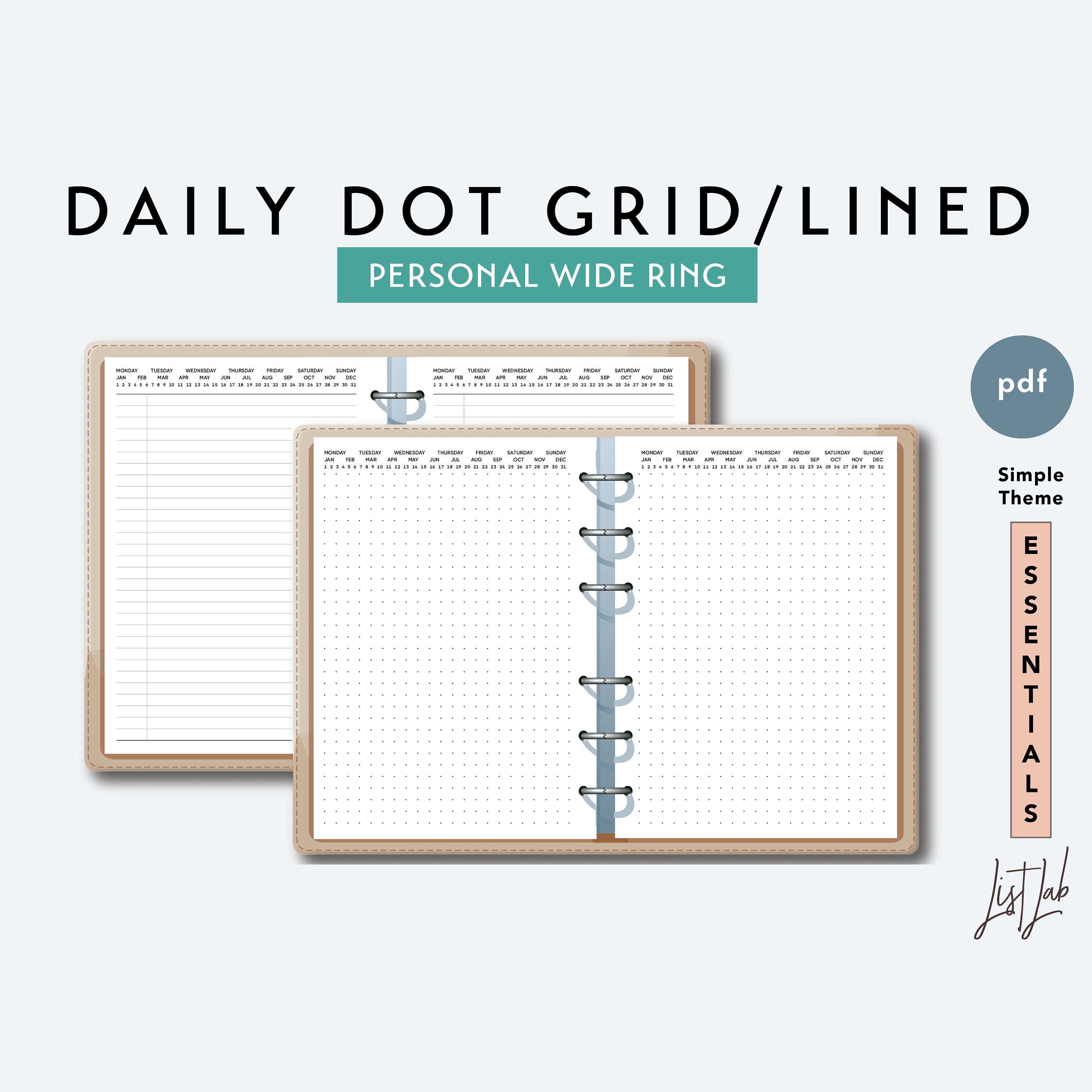 Personal Wide Daily Dot Grid And Daily Lined Printable Ring Etsy Canada